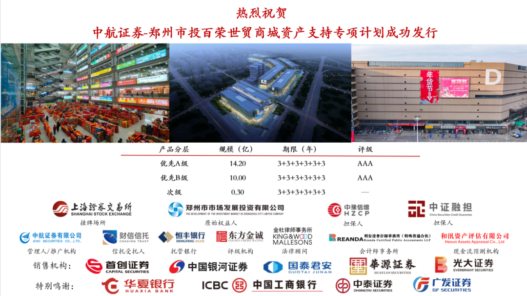 3月28日,鄭州市市場(chǎng)發(fā)展投資有限公司(以下簡(jiǎn)稱鄭州市投)成功發(fā)行“鄭州市投百榮世貿(mào)商城資產(chǎn)支持證券(CMBS)”,發(fā)行規(guī)模24.5億元,優(yōu)先級(jí)證券獲AAA信用評(píng)級(jí)。