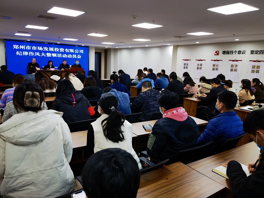 11月9日,鄭州市市場(chǎng)發(fā)展投資有限公司召開(kāi)紀律作風(fēng)大整頓活動(dòng)動(dòng)員會(huì )。公司常務(wù)副總經(jīng)理趙潔,黨委委員、工會(huì )主席龐曉冰,黨委委員、總經(jīng)理助理孫濤,黨委委員、財務(wù)管理中心總監逯衛川出席會(huì )議,公司本部及各子公司全體人員參加會(huì )議。