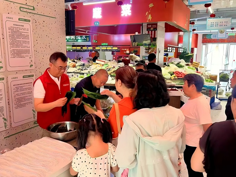 在市投集市未來(lái)路農貿市場(chǎng),市場(chǎng)組織的“粽情端午,樂(lè )購市投”活動(dòng),吸引了眾多周邊社區居民熱情參與,大家共聚一堂,包粽子、品美食、享優(yōu)惠,在歡聲笑語(yǔ)中感受傳統節日的魅力。