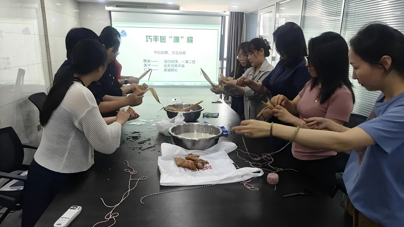 在暢尚農業(yè)黨支部,大家一邊交流著(zhù)端午習俗,一邊分享著(zhù)對廉潔初心的感悟?!棒杖~要選干凈的,米要填得實(shí)誠,繩要扎得緊實(shí),這樣粽子才不會(huì )散,我們每個(gè)人也要堅守干凈、誠實(shí)、自律的底線(xiàn),時(shí)刻繃緊廉潔這根弦?!贝蠹壹娂姳硎?,在今后的工作和生活中,將時(shí)刻保持清正廉潔的政治本色,自覺(jué)抵制各種誘惑,用實(shí)際行動(dòng)踐行初心使命,營(yíng)造崇廉尚潔的良好氛圍。